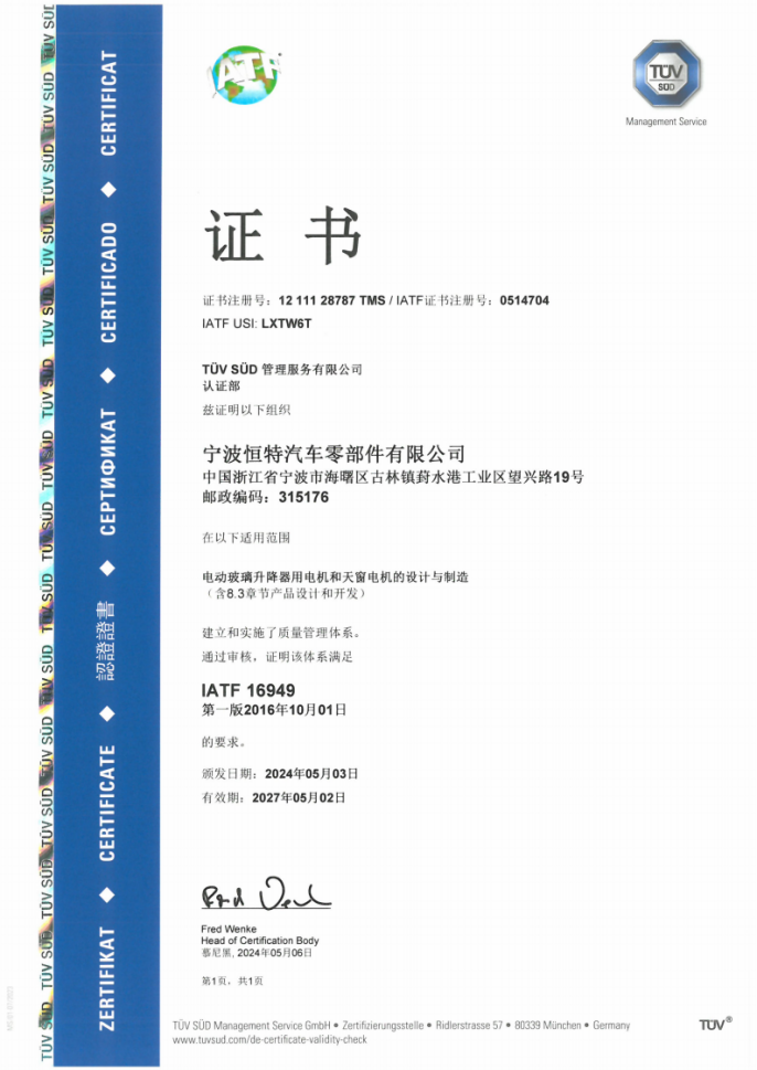 公司成立于1998年,坐落于宁波市海曙区,是一家汽车系列电机专业制造商。主要产品:汽车电动玻璃升降电机、天窗电机遮阳帘电机、汽车尾门电机、刹车泵系列电机、空调出风口电机、座椅电机、后视镜电机等。与国内各大汽车生产商建立良好稳固的合作关系,系列产品为其提供一级或二级配套。部分产品远销欧美、东南亚等国家和地区。